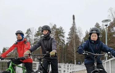 Fatbikeja voi vuokrata vapaasti omaan käyttöön. Fatbikejen haku Wanhalta asemalta.